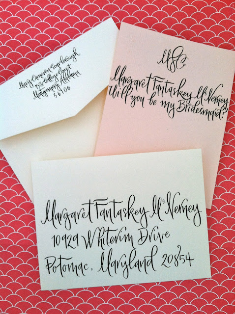 Recently I was asked to help two wonderful brides put a fun new twist on the classic question of "Will you be my Bridesmaid?" Both of these girls wanted me to create something both beautiful and fun to send to the girls who would (hopefully!) stand with them on their wedding day. I was obviously so excited to be a part of such a special tradition. I was also really excited to be able to take a stab at something I hadn't done before. Here is what we came up with!
